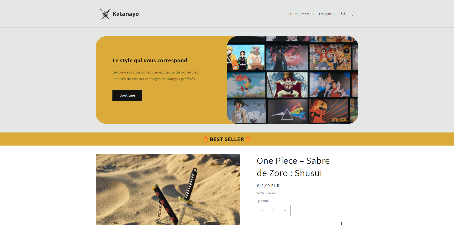Site e-commerce spécialisé dans la vente de mini-katanas
